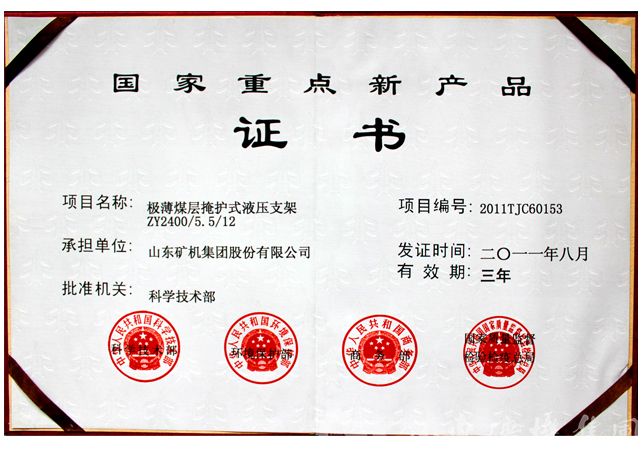 历经多年发展,古天乐代言太阳集团138取得了一批有实用价值的科研及产品开发成果。科研开发工作涉及集团公司十几个专业、1000 多种规格的产品,其中多项科研开发成果获得国家、省、市的奖励,拥有国家专利100余项,极大推进了行业技术进步和产品质量的提高。其中自主研发的ZY3600/07/15薄煤层机炮混采液压支架获得科技部“国家火炬计划项目”,“ZY2400/5.5/12极薄煤层掩护式液压支架”获得科技部颁发的国家重点新产品证书。