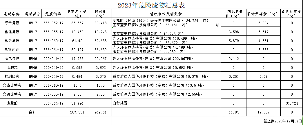 | 危险废物污染防治责任信息公开 | |||||||